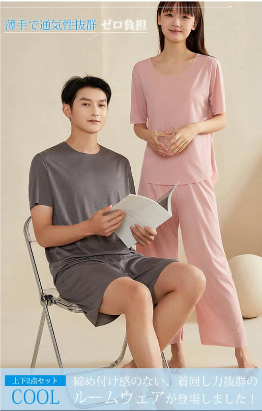 パジャマ ルームウェア 上下セット ペア レディース メンズ 冷感接触 75893nodc001