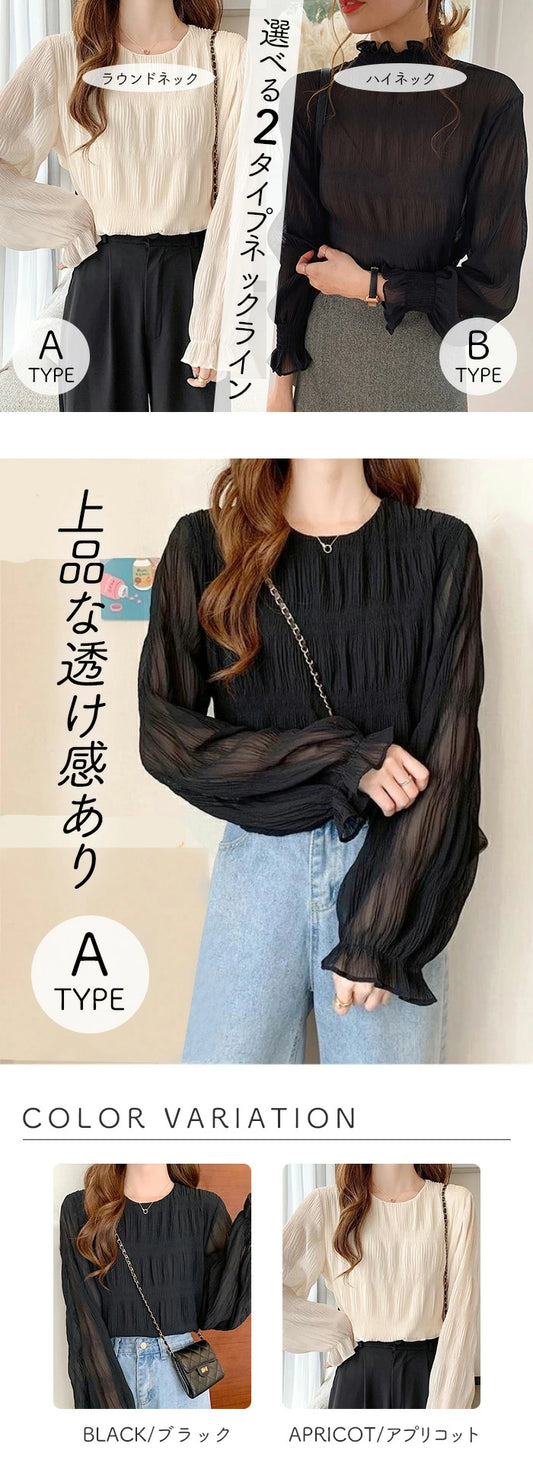 ブラウス ギャザー トップス プルオーバー シフォンブラウス レディース シャーリング シアー