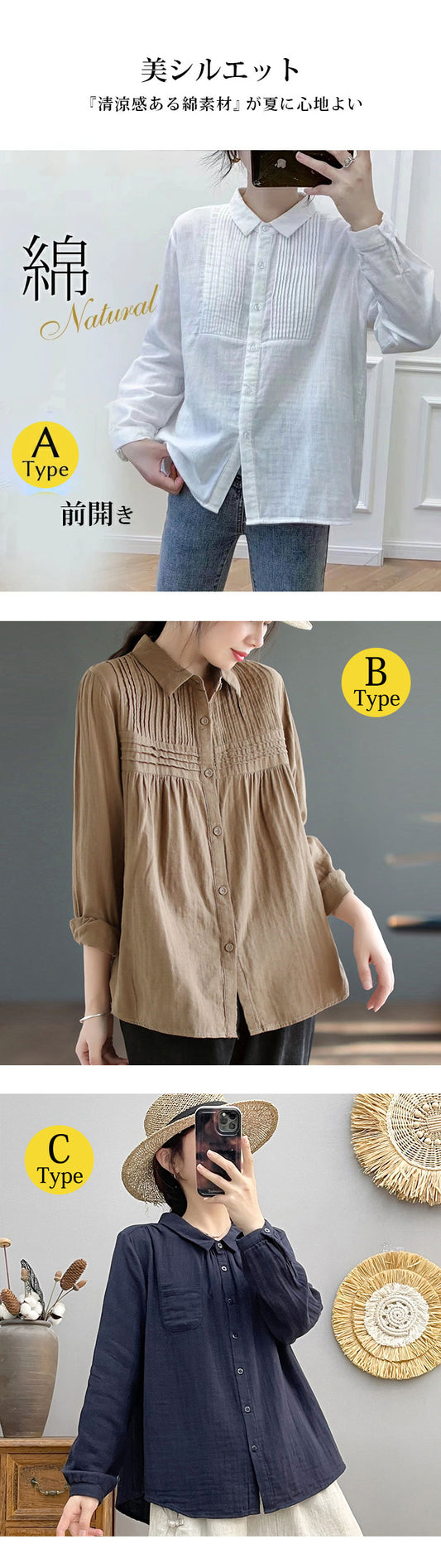 ブラウス ダブル ガーゼ シャツ コットン aqhshirt2type
