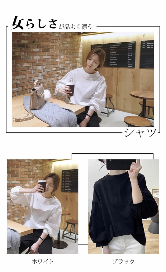 ブラウス レディース オフィス インナー カットソー パフスリーブ バルーンスリーブトップス 無地 クルーネック 体型カバー ゆったり チュニック トップス お洒落 gege004