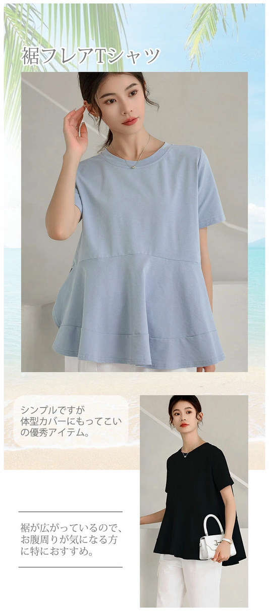 tシャツ 半袖 ブラウス シャツ Uネック ペプラム チュニック レディース 夏 ふわふわ可愛い 清新感