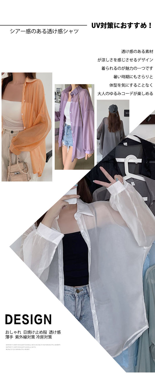 UVカット シャツ シアーシャツ 薄手 接触冷感 プルオーバー レディース yx1188