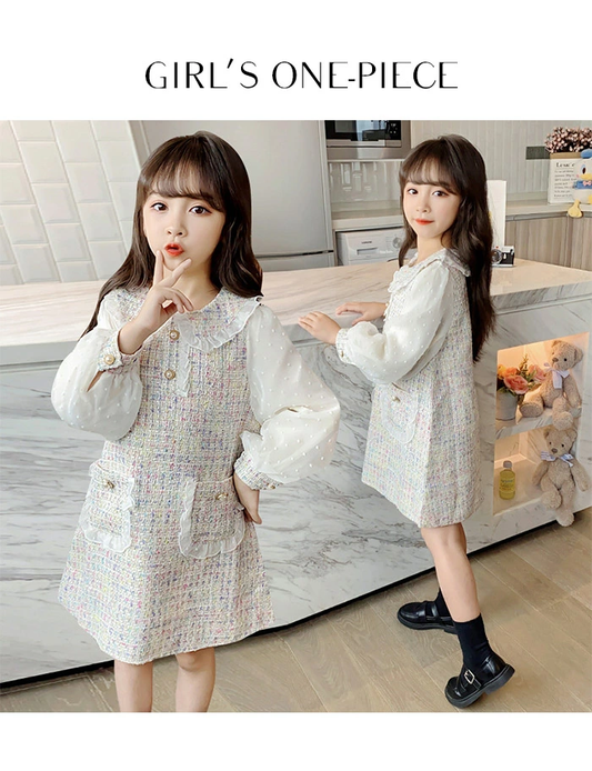 子供服 女の子 ワンピース 長袖 ガールズ フォーマル スーツ レイヤード 可愛い 通学 入園式 nxtong001