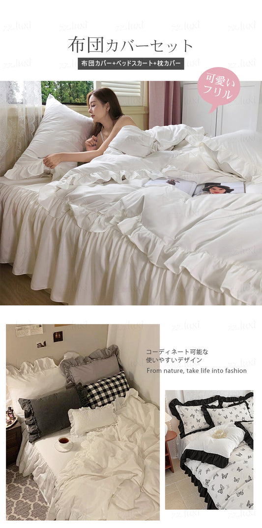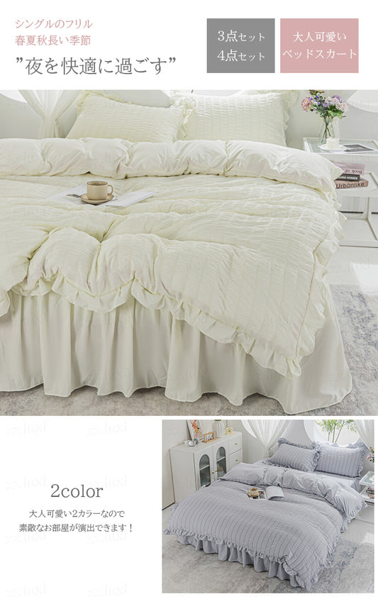 布団カバーセット 3点セット フリル シングル セミダブル ベッドスカート かわいい