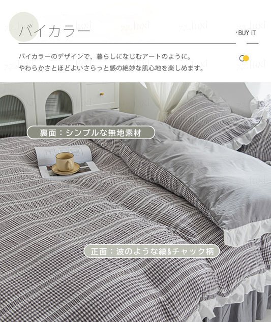 布団カバー おしゃれ 3点セット フリル付き シアサッカー生地 安心 清潔 吸汗 速乾 新生活