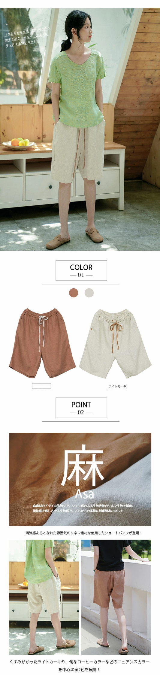 麻 ショートパンツ 無地 ハーフパンツ 薄手 ゆったり ショーパン yamlan8033