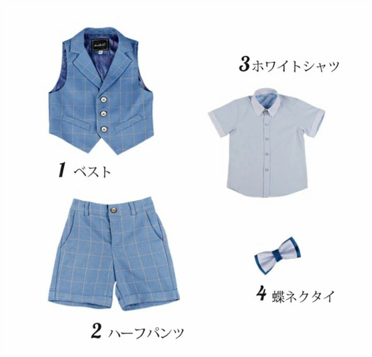 超お得 男の子 スーツ 夏 半袖シャツ 半ズボン フォーマル 4点セット