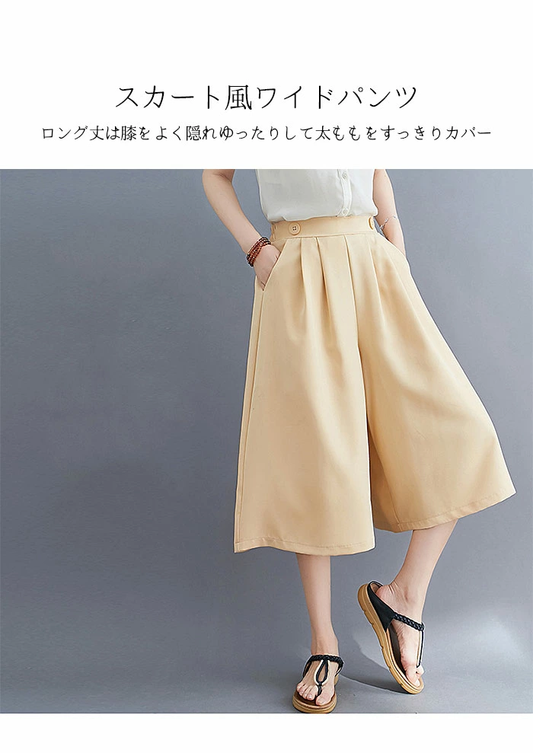 ガウチョパンツ レディース ワイドパンツ キュロット スカーチョ スカンツ クロップドパンツ 七分丈 yf247