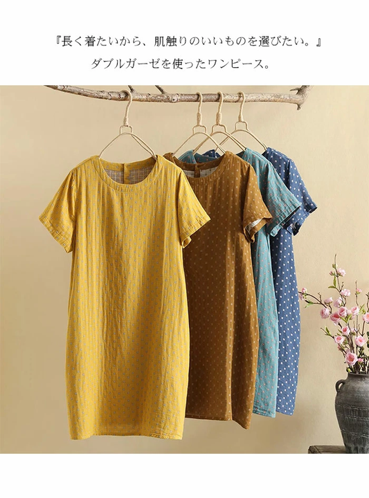 ガーゼ ワンピース 半袖 ワンピース コットン ワンピースガーゼワンピース ミモレ丈 aqh2225