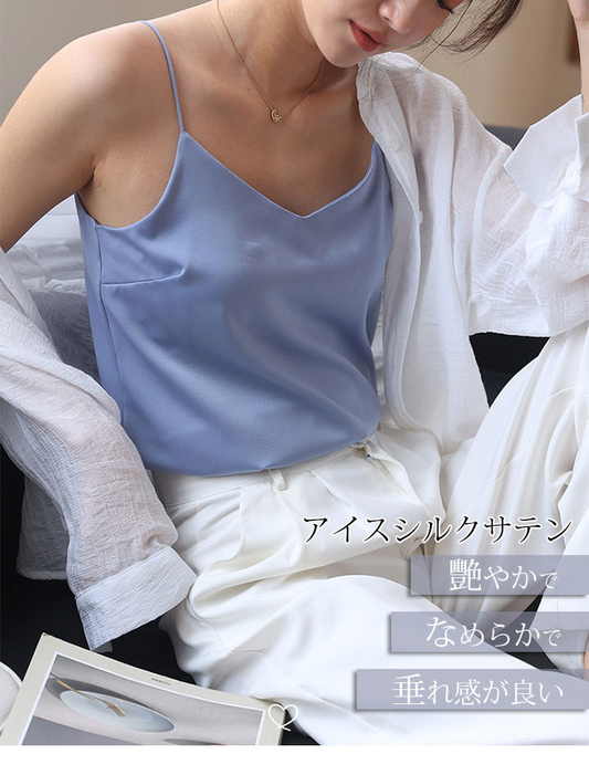 カップ付きタンクキャミ サテン ブラトップ サテン カップ付きインナー サテンキャミソール ブラ チューブトップ Vネック ぴったりフィット la0301