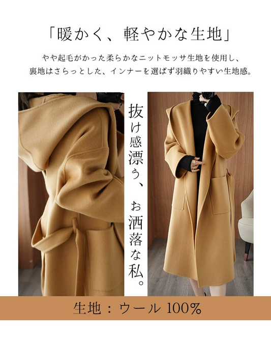 ウール100% チェスターコート ロング コート レディース コート フード付き アウター yax2107