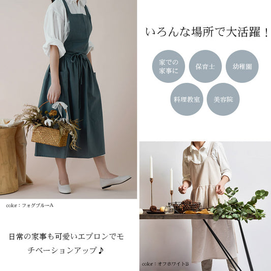 エプロン おしゃれ ワンピース ポケット付き 綿100% 保育士 無地 料理教室