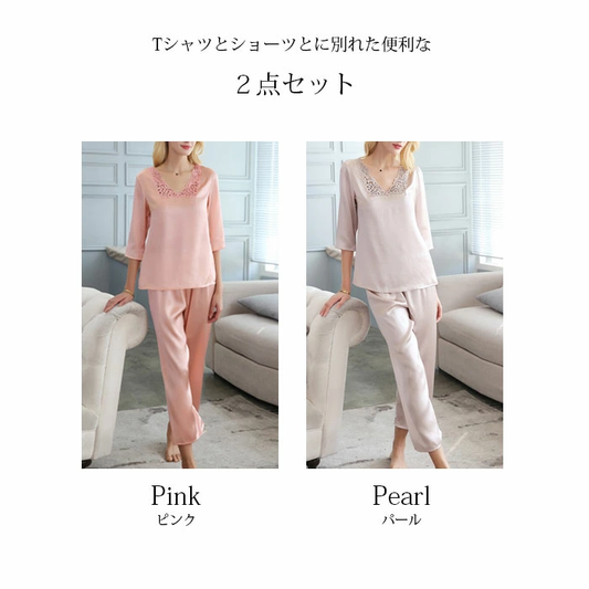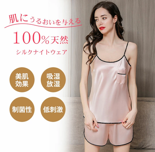 シルク パジャマ レディース ルーム ウェア 絹 キャミソール ショートパンツ 上下 セット xman33203