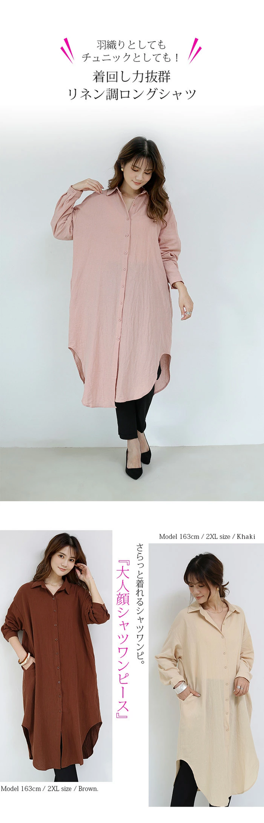 シャツワンピース ロングシャツ ロングワンピ レディース ロング丈 シャツ ysr002