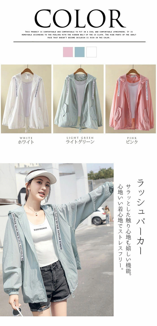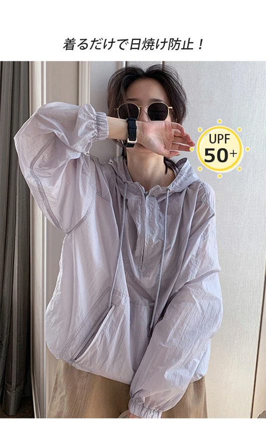 uvカット ラッシュパーカー パーカー レディース メンズ フード付 UVパーカー zhanm221