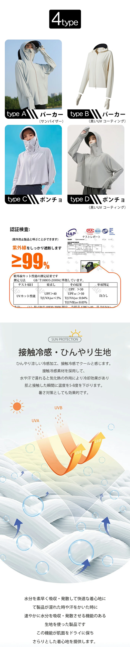 UVカット性能の最高ランクUPF50+ 有害な紫外線を99%カット 夏の強い日差しから肌を守る ラッシュガード レディース つば付き 速乾 自転車用 軽量 運転 ポンチョ qqdou7009