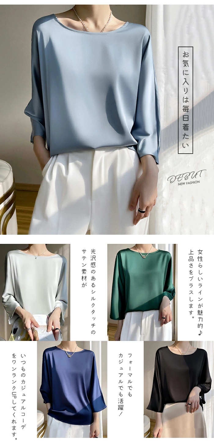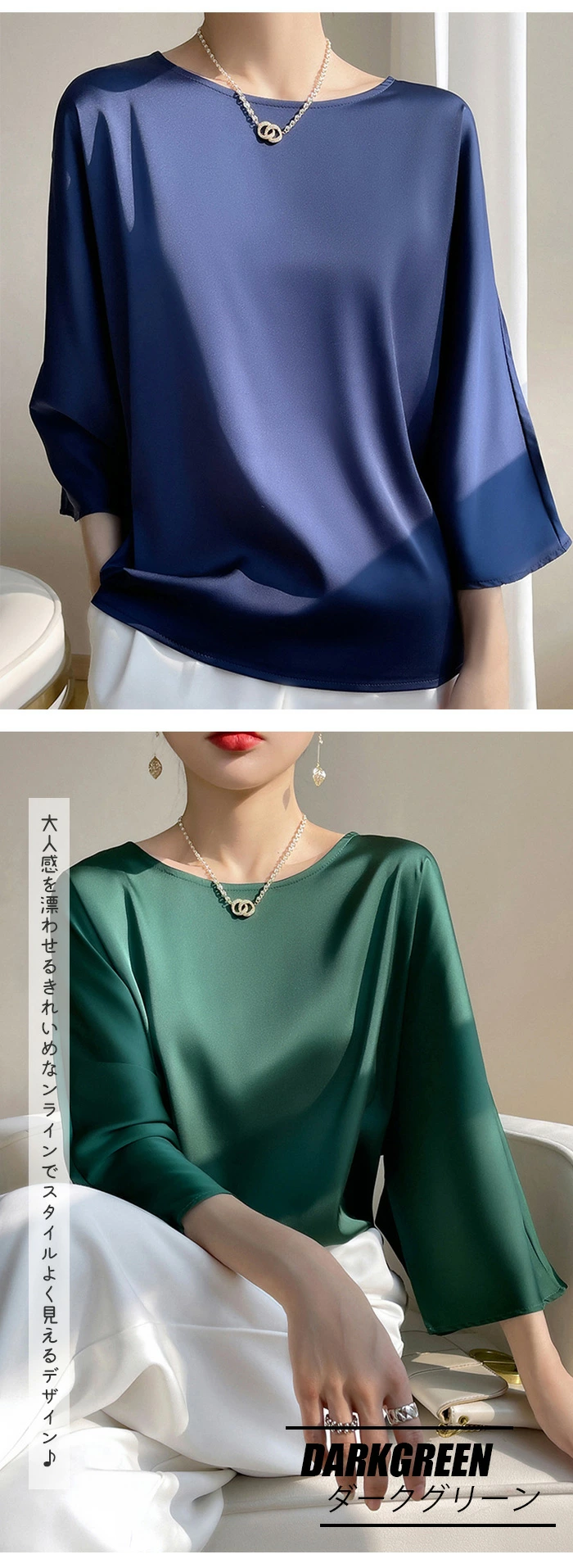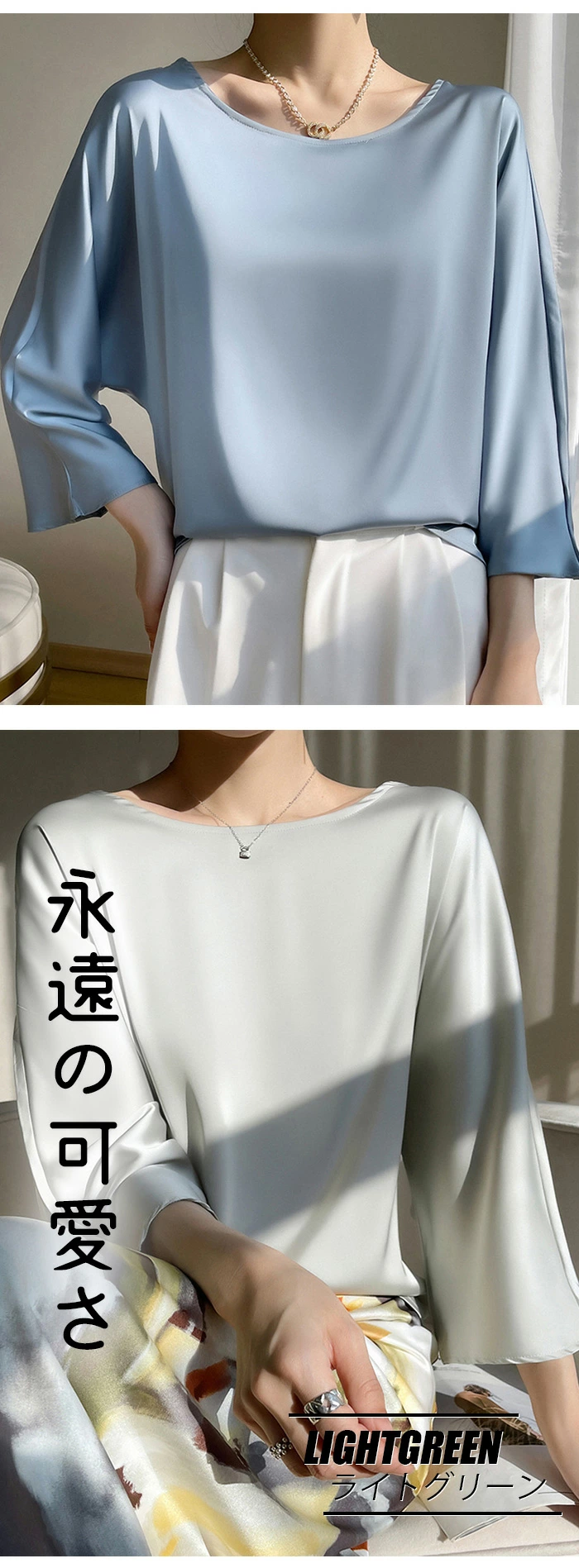 シルク風 ブラウス レディース シャツブラウス 七分袖 シフォン プルオーバー wangdu16