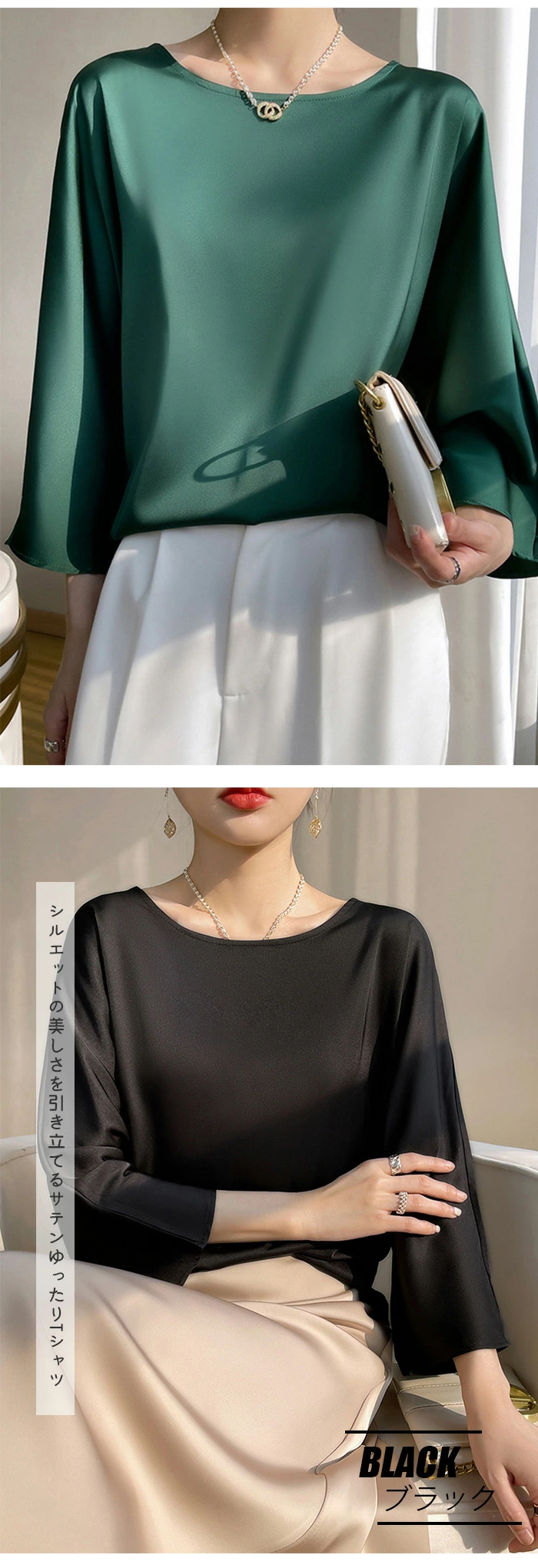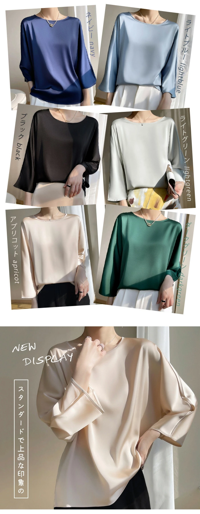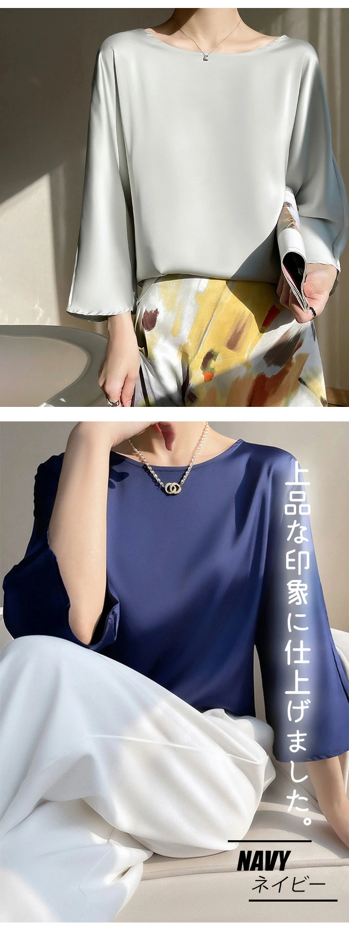 シルク風 ブラウス レディース シャツブラウス 七分袖 シフォン プルオーバー wangdu16