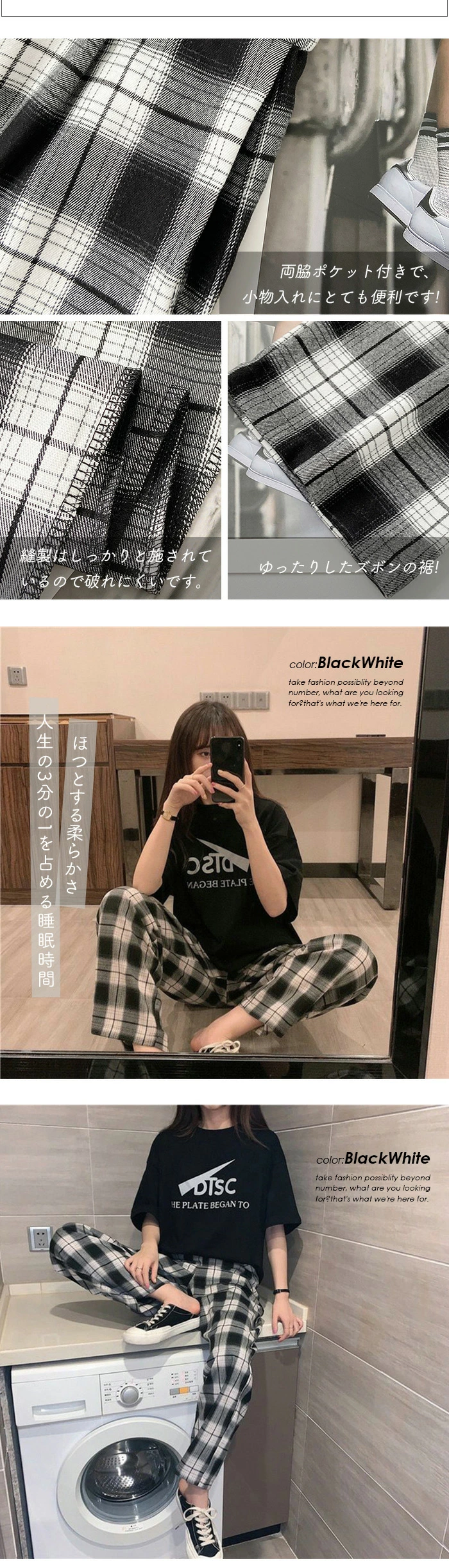 パジャマ パンツ レディース チェック イージーパンツ ルームパンツ 薄手 sl001