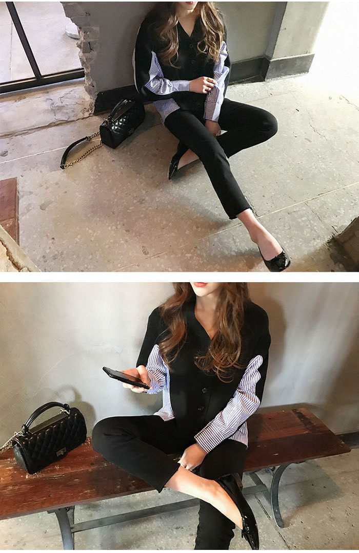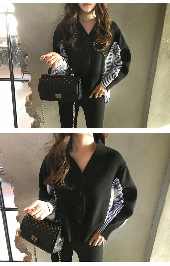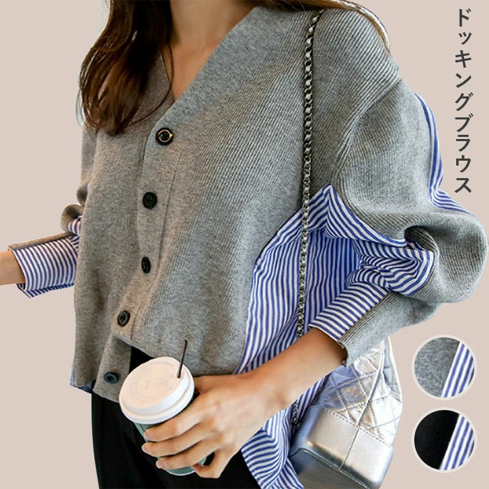 ブラウス レディース レイヤード 長袖 カーディガン 秋 切り替え インナー Vネック long8603