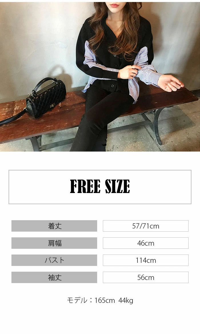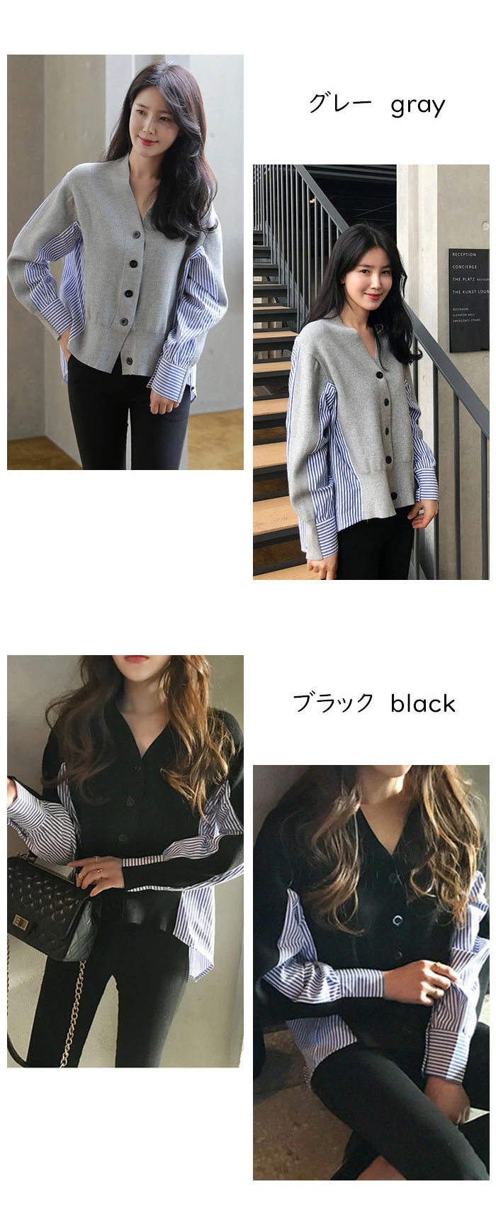 | コメント | ★縦ラインを強調して、スタイル良く魅せてくれるストライプ。異素材切り替えのコンビネーションカーディガンの登場 清涼感あふれるストライプ切り替えで、周りと差がつくオシャレなデザイン。 バイカラーの配色で体のラインが締まって見え、着痩せ効果が期待できますよ。 ★シャツとニットをドッキングしたニットカーディガン。前から見ればカーディガン、後ろはシャツという一風変わったデザイン。配色ニットとストライプの組合わせがオシャレな1枚です。 ★首元はVネックで、顔周りをスッキリ。ゆったりシルエットで気になる体のラインもカバーします。お尻が隠れる長めの丈感も嬉しいポイント。 ★デニムやジーンズ、ホワイトボトムやワイドパンツ、ガウチョパンツやショートパンツなどとカジュアルに合わせたり、 シフォンやフレア、チュールやレースなどのスカートを履いてフェミニンコーデにするなど幅広いアイテムとのコーディネートが楽しめます。 また、スキニーパンツやテーパードパンツ、チノパンやタイトスカートと組み合わせてキレイめスタイルにも。 オフィスカジュアルとしてもお使いいただけますよ。 通勤や通学、会社や学校、在宅ワークやリモートワーク、ママコーデやお子様の送迎、散歩やサイクリング、ドライブや旅行、アウトドアやレジャー、 デートや記念日、女子会や食事会、部屋着やルームウェア、ワンマイルコーデなどいろんなシーンで活躍してくれる万能アイテム |