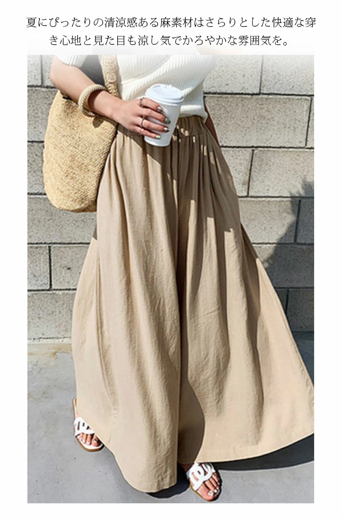 | 商品メリット | ★動くたびにふわっと揺れるプリーツが美しい大人気のワイドパンツ。ウエスト総ゴム仕様ではき心地もラクちん。 ★定番のワイドアンクルパンツ、とても便利なアイテムです。体型カバーしてくれるので全体的にホッソリ見えます。薄手で軽量のため、春~秋は快適です。 ★夏に欠かせないナチュラルテイスト ナチュラルな麻素材は、さらりとした着心地で見た目も涼やか暑い日にも履き心地良い ★脚長と美脚も期待できちゃうハイウエストなデザインと マキシ丈がポイントで ぺったんこシューズから ハイヒールまで あらゆる シューズで 様になります ★軽くてサラリとしているのでアクティブなシーンでもお使いいただけます。ママさんコーデやオフィススタイル、カーディガンやジャケットを羽織ってもコーディネイトが決まります。 ★ 1着あれば間違いなしの定番人気ガウチョパンツです。 どんなアイテムともバッチリ合わせられます。 |
