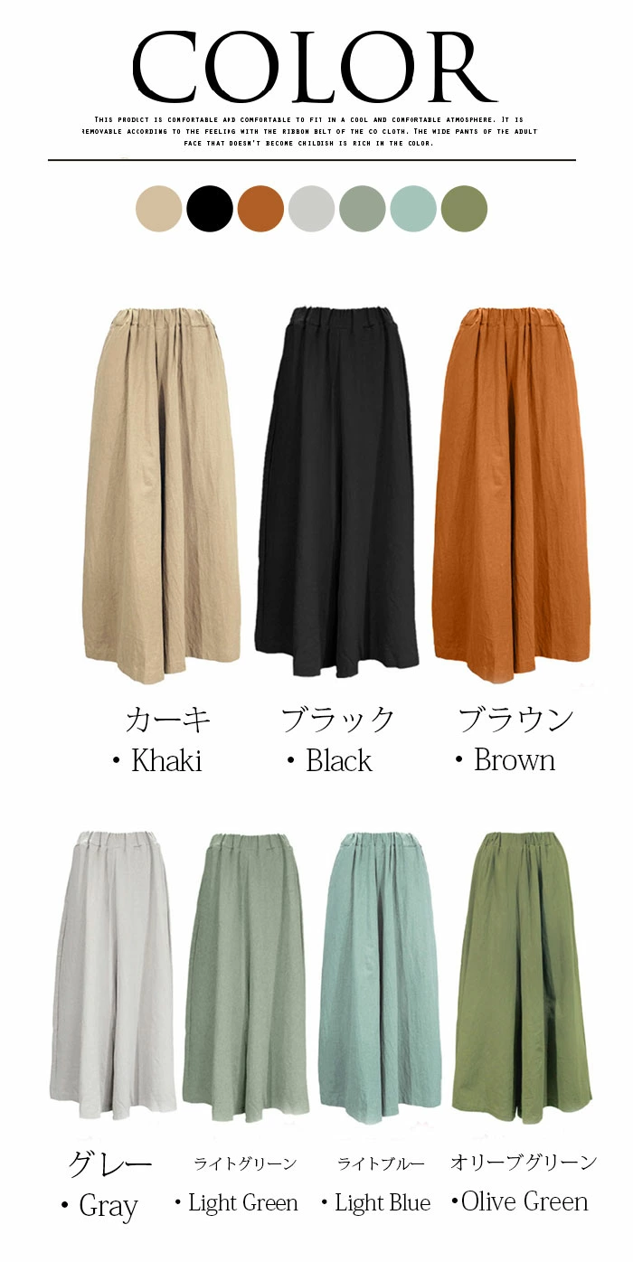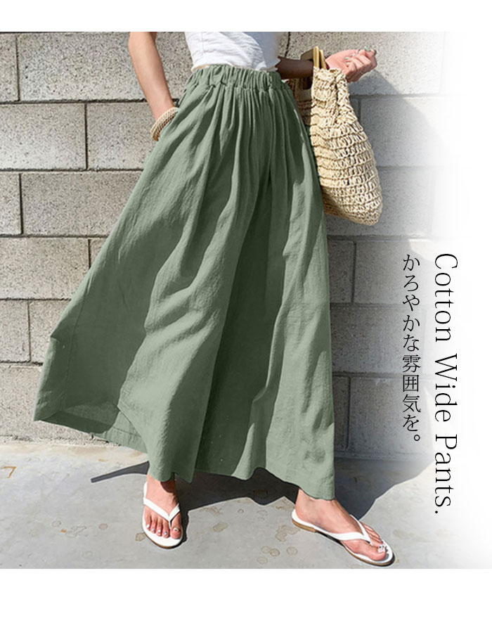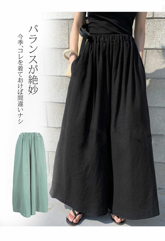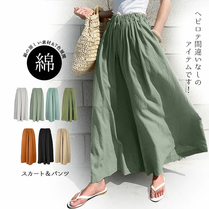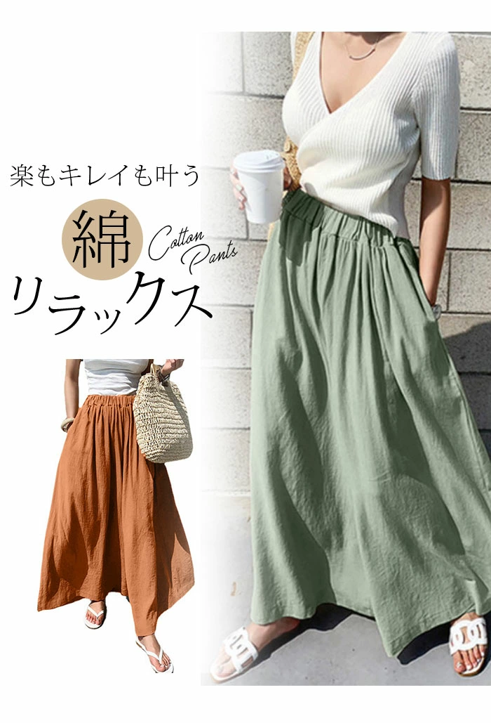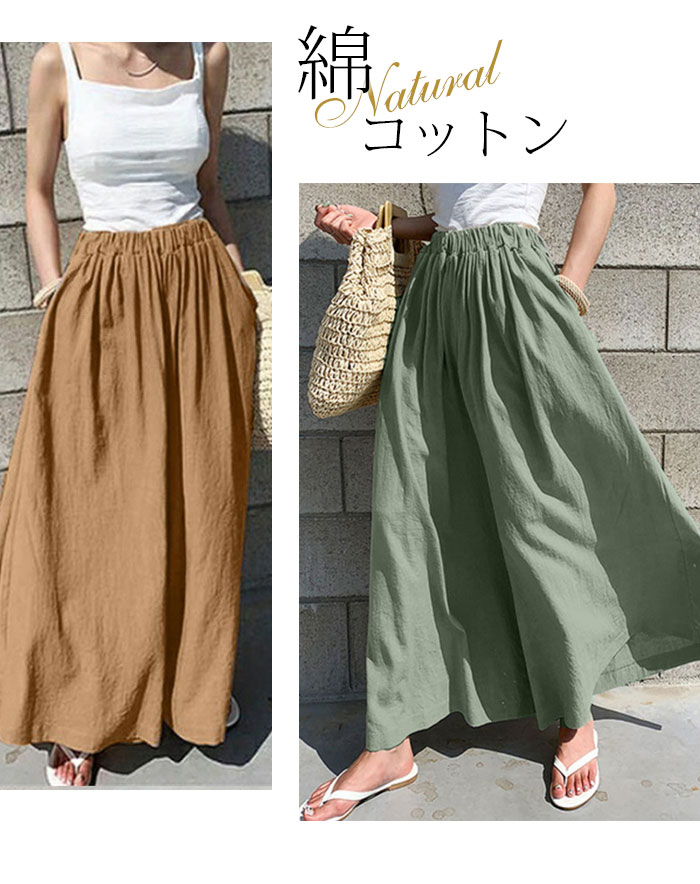 ワイドパンツ レディース ガウチョパンツ 綿 ゆったり ボトムス 春 夏 森ガール ssjl007