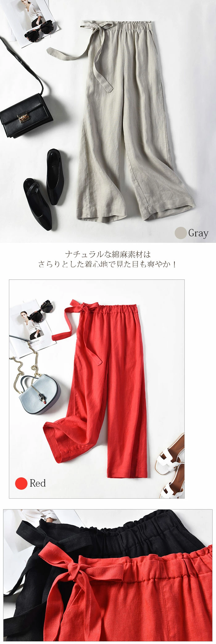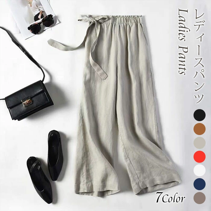 ワイドパンツ レディース パンツ 綿麻 ゆったり 9分丈 上質 大きいサイズ ssjl809628